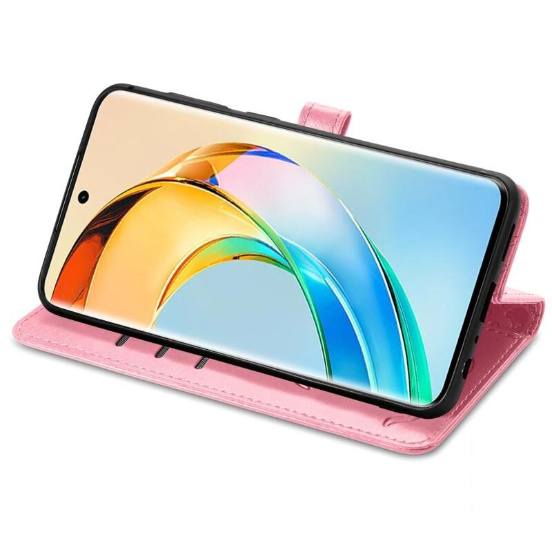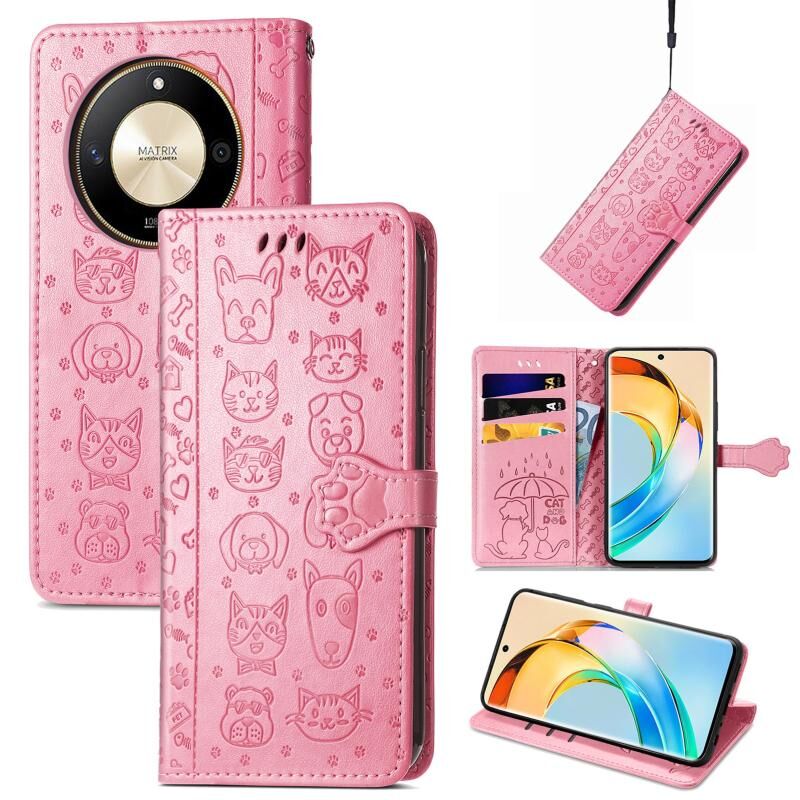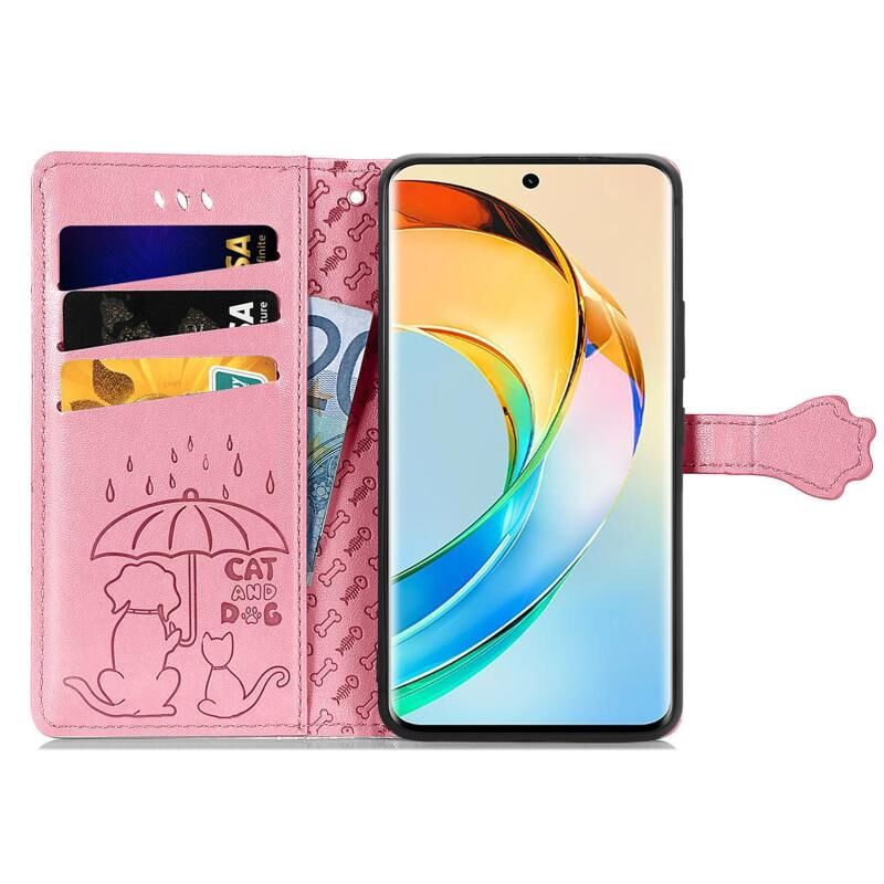 Θήκη τηλεφώνου Honor X50 με ανάγλυφο σχέδιο γάτας και σκύλου από δέρμα (Χρυσαφί Ρόδινο)