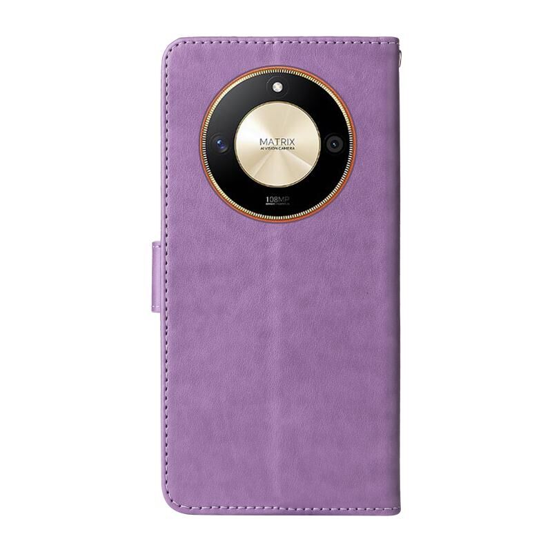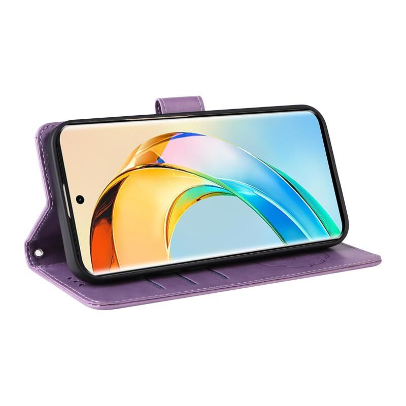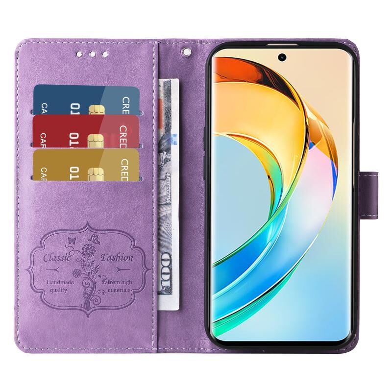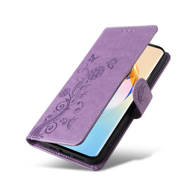 Θήκη τηλεφώνου από δέρμα με ανάγλυφα λουλούδια πεταλούδας για Honor X50 GT / X50 Pro (Μωβ)