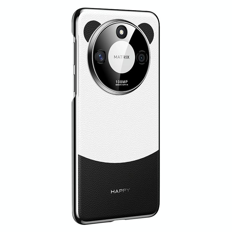 For Honor X50 Panda 2 Plain Leather PC Phone Case(Black White)