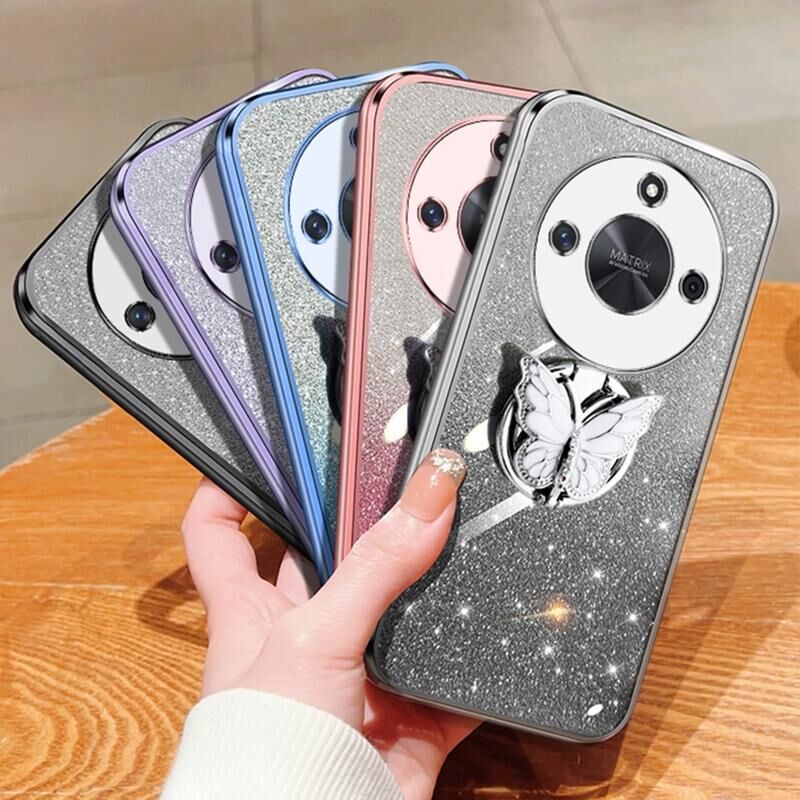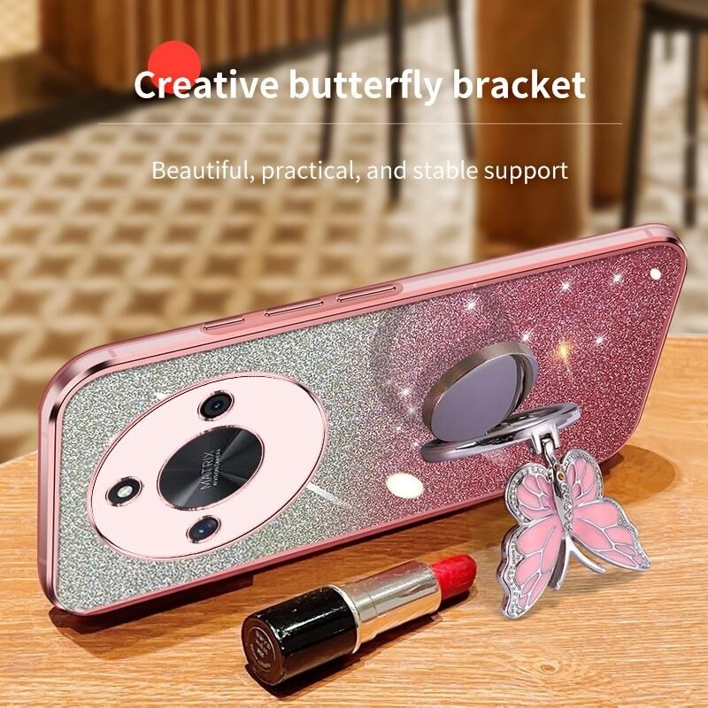 Θήκη κινητού τηλεφώνου TPU με σχέδιο πεταλούδας από γκλίτερ και διαβαθμισμένο χρώμα για Honor X50 (Ροζ)