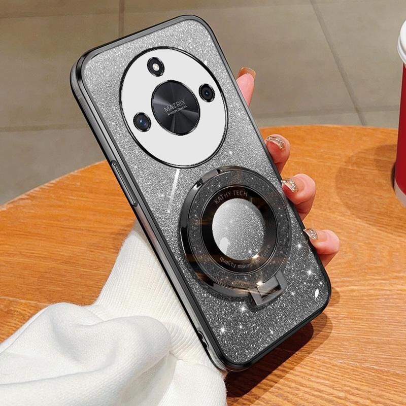 Για Honor X50 επιμεταλλωμένο διαβάθμιση Glitter στρογγυλή κάτοχος TPU τηλέφωνο υπόθεση (μαύρο)