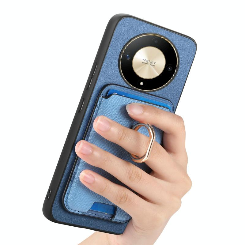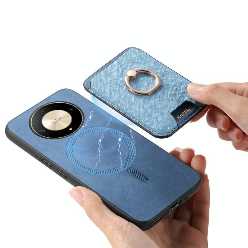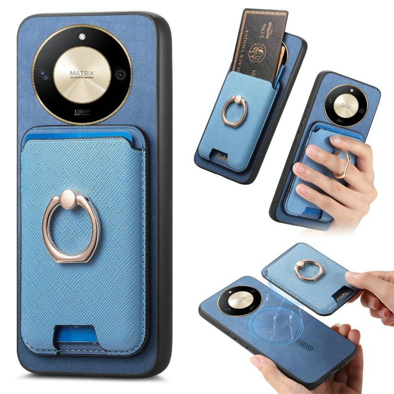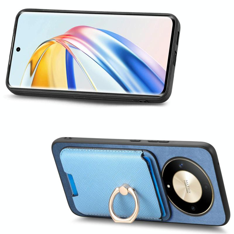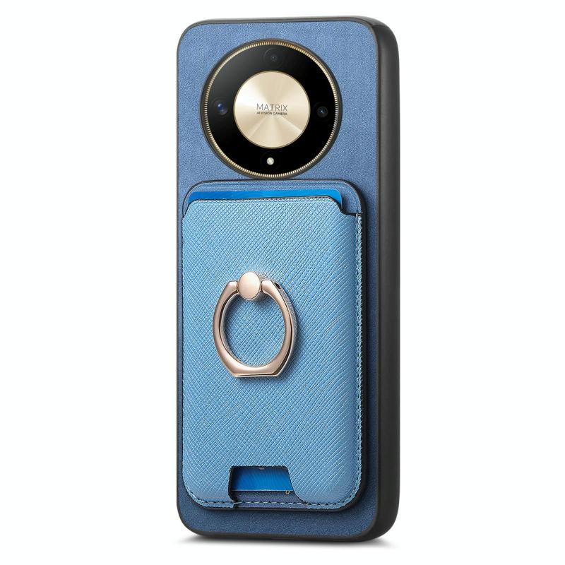 Θήκη Honor X50 Retro Cross Leather με Δαχτυλίδι & Κάρτες MagSafe (Μπλε)