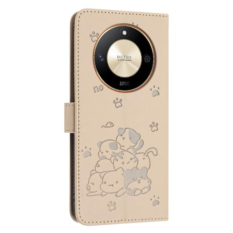 Θήκη τηλεφώνου από δέρμα με ανάγλυφο γατάκι και κορδόνι για Honor X50 / X9b (Μπεζ)