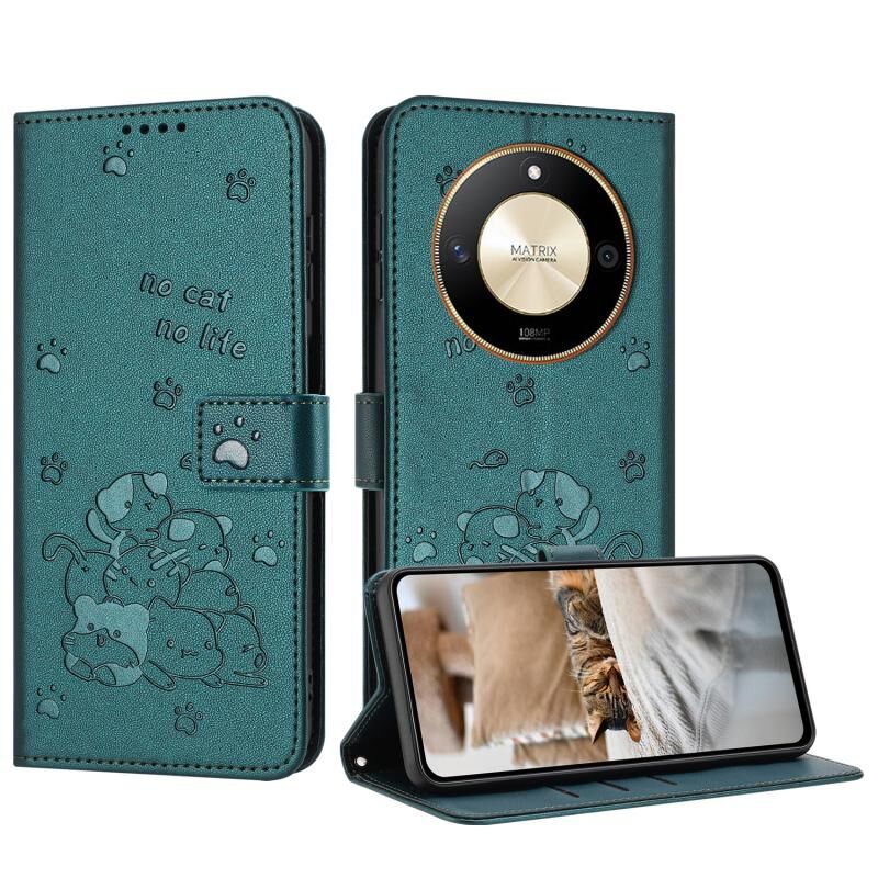 Θήκη τηλεφώνου από δέρμα με ανάγλυφο γατάκι και κορδόνι για Honor X50 / X9b (Μωβ)