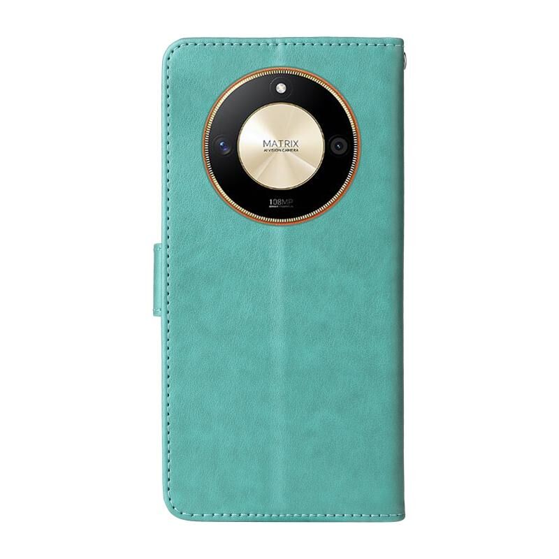 Θήκη τηλεφώνου από δέρμα με ανάγλυφα λουλούδια και πεταλούδες για Honor X50 / X9b / Magic6 Lite (πράσινο)