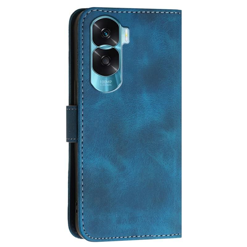 Θήκη τηλεφώνου από δέρμα με ανάγλυφο σχέδιο πλέγματος και πεταλούδας για Honor X50i 5G / 90 Lite με κορδόνι (Σκούρο Μπλε)