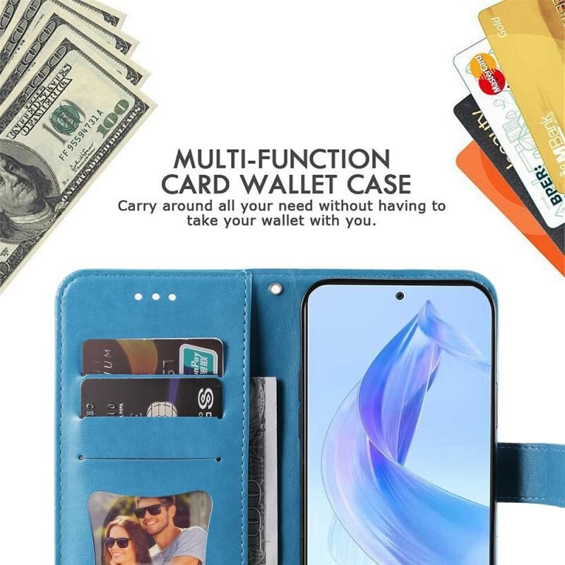 2. Λειτουργία πορτοφολιού: Η δερμάτινη θήκη είναι εξοπλισμένη με υποδοχές για κάρτες και ένα μικρό ποσό μετρητών.