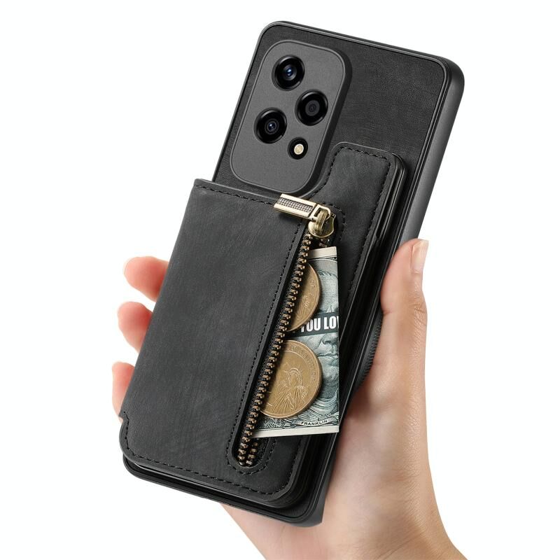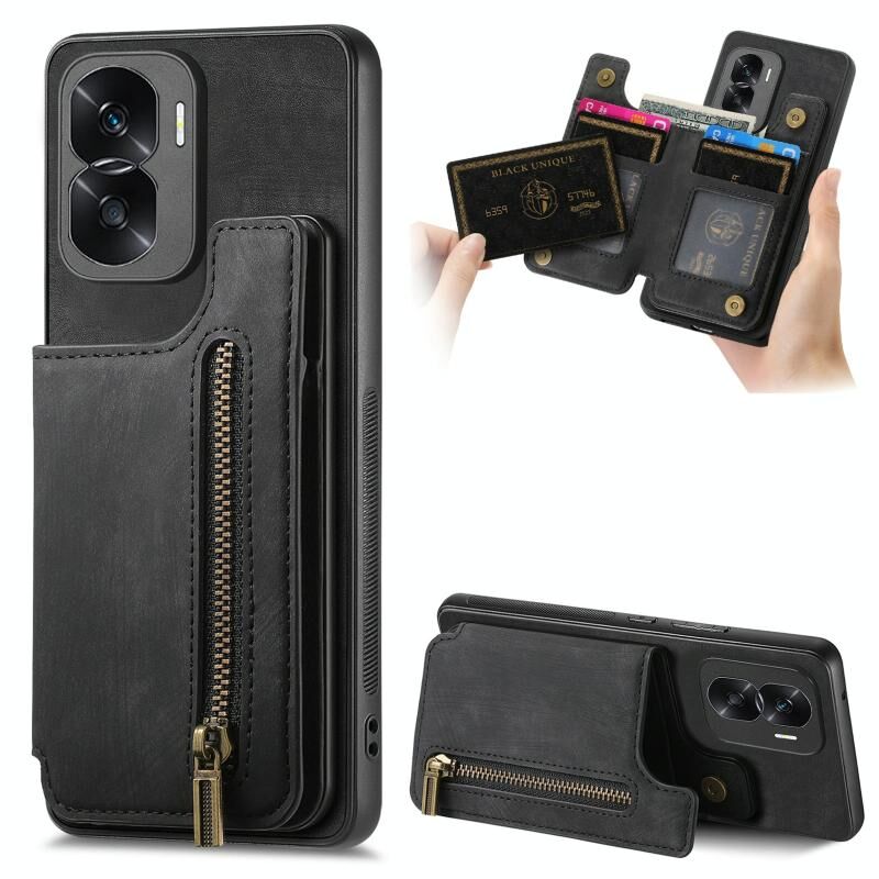 Για Honor X50i / 90 Lite Ρετρό δέρμα φερμουάρ πορτοφόλι πίσω τηλέφωνο υπόθεση (μαύρο)