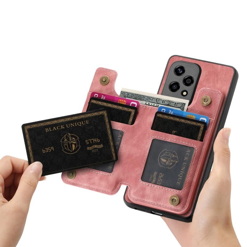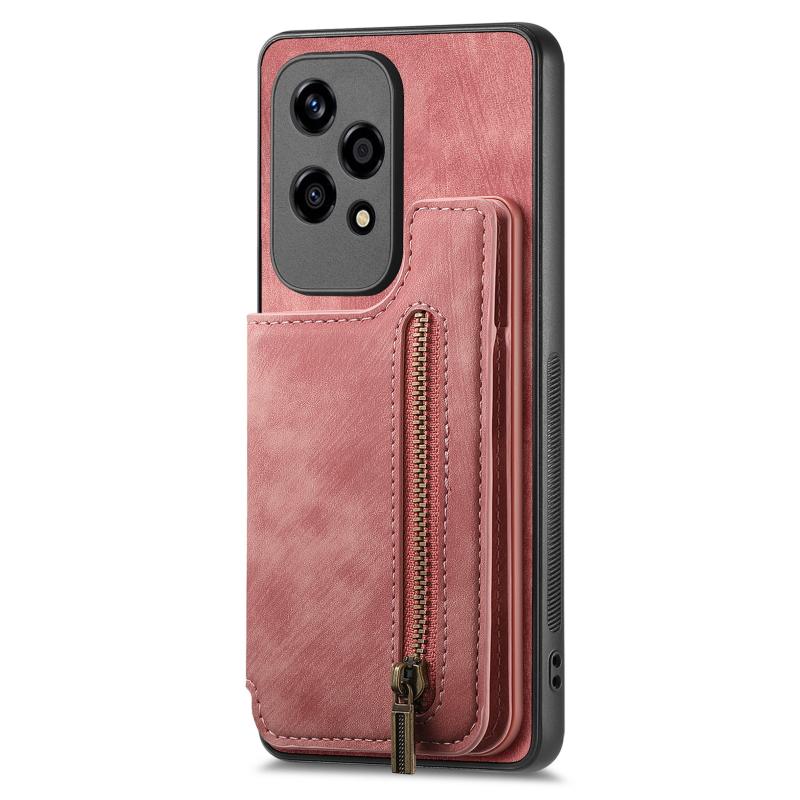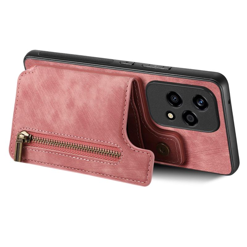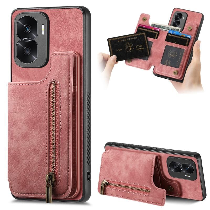 Θήκη Honor X50i / 90 Lite Δερμάτινη με Φερμουάρ και Θήκη Κάρτας (Ροζ)