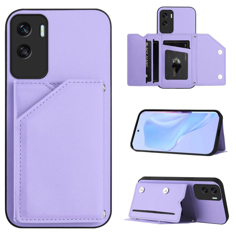 For Honor X50i / 90 Lite Skin Feel Four Card Slots Phone Case with Wrist Strap(Purple)