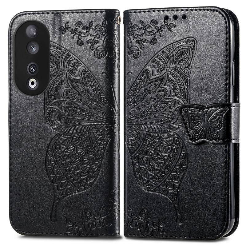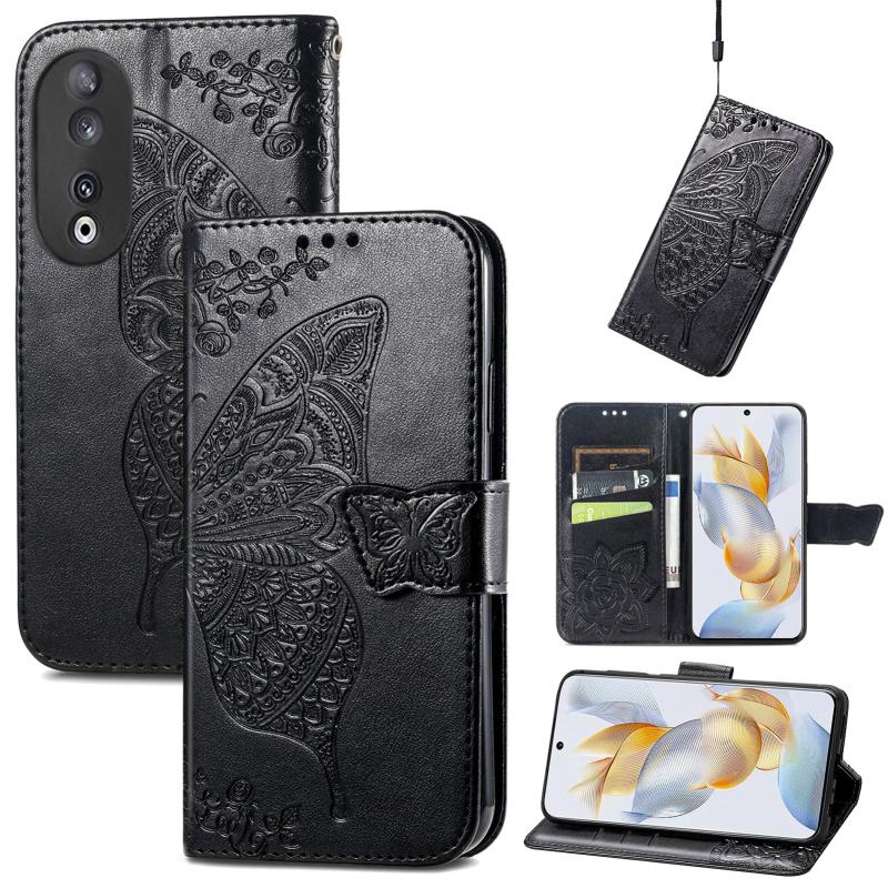 For Honor X50i+ Butterfly Love Flower Embossed Leather Phone Case(Black)