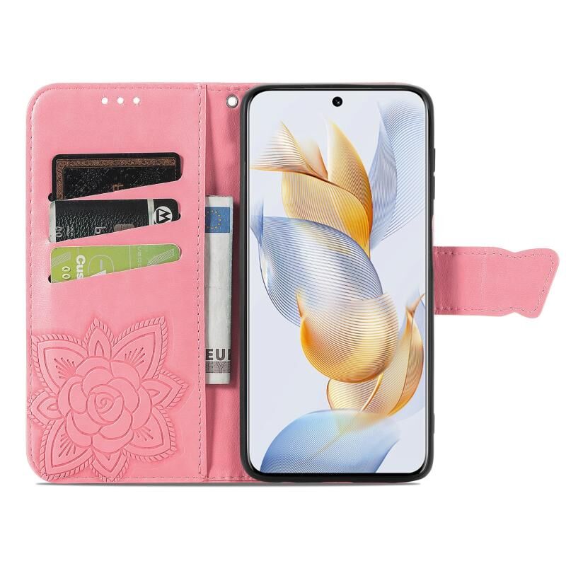 Θήκη τηλεφώνου Honor X50i+ Butterfly Love Flower Embossed Leather (Χρυσό ροζ)