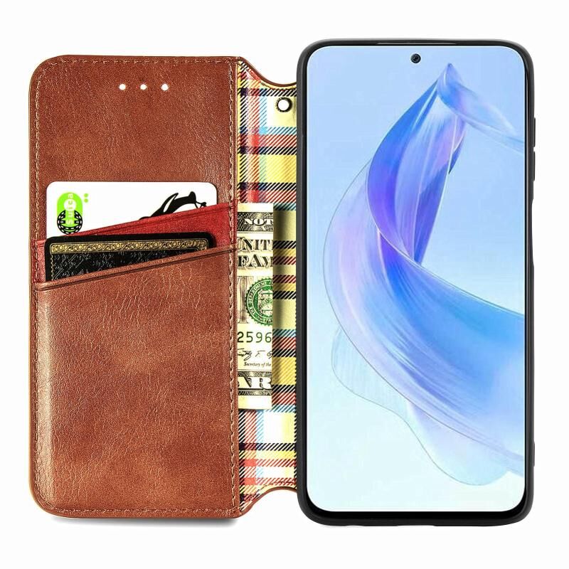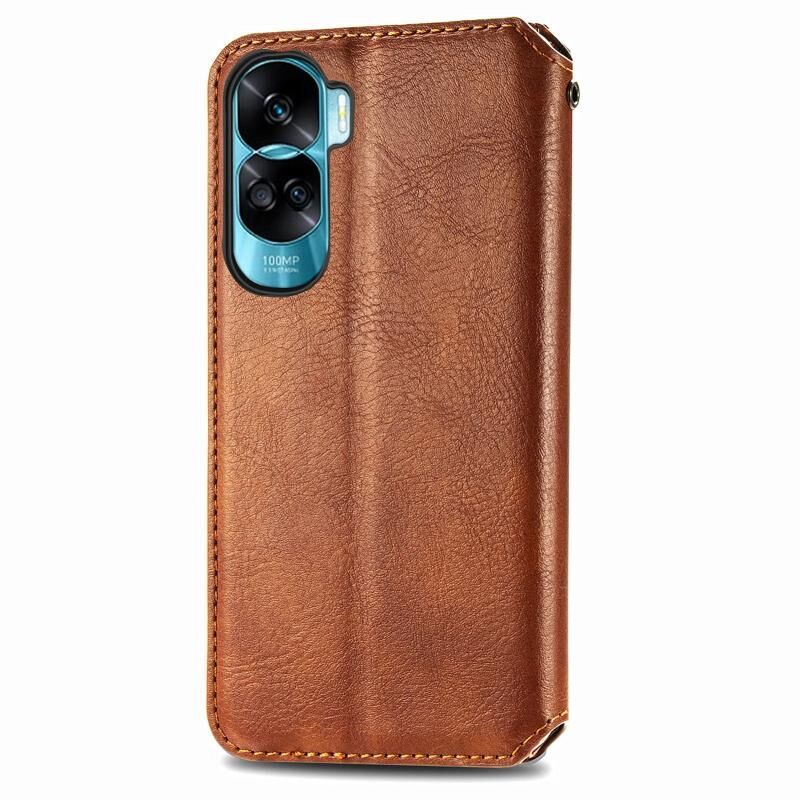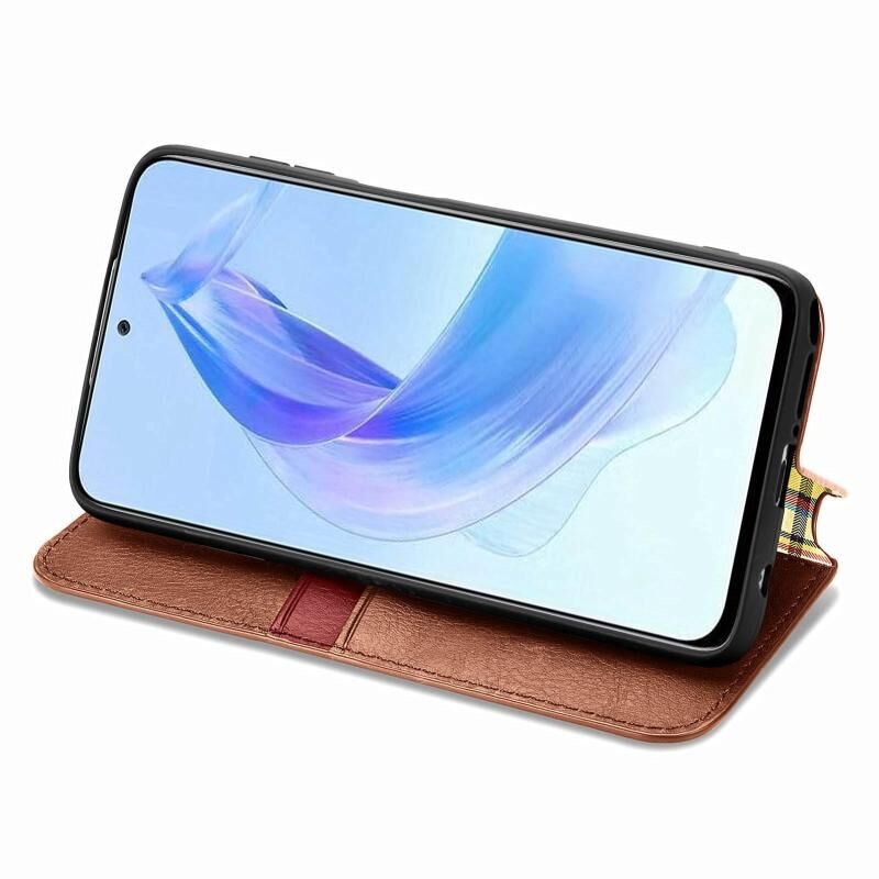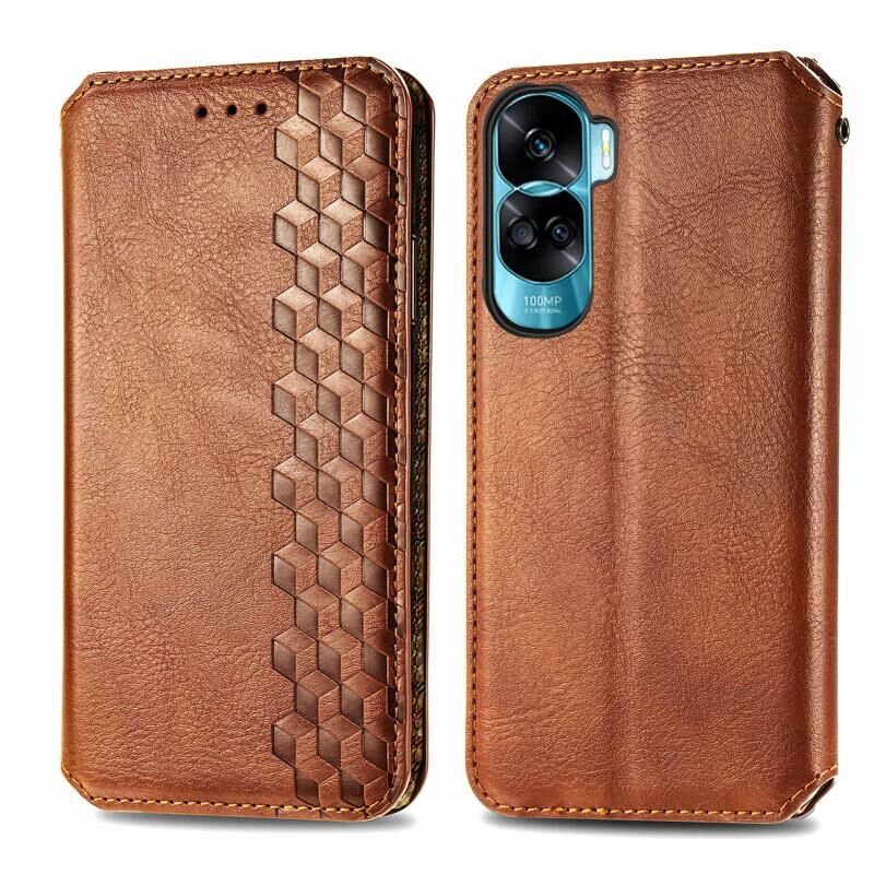 Για Honor X50i Κυβικό πλέγμα πιέζεται μαγνητική δερμάτινη θήκη τηλεφώνου (Καφέ)