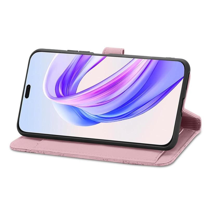Για Honor X50i + ανάγλυφο λουλούδι φερμουάρ δερμάτινη θήκη τηλεφώνου (ροζ)