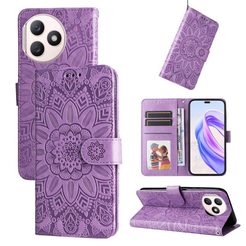 For Honor X50i+ Embossed Sunflower Leather Phone Case(Purple)