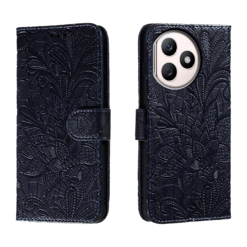 Για Honor X50i + Lace λουλούδι ανάγλυφο Flip υπόθεση τηλεφώνου δέρμα (Σκούρο μπλε)