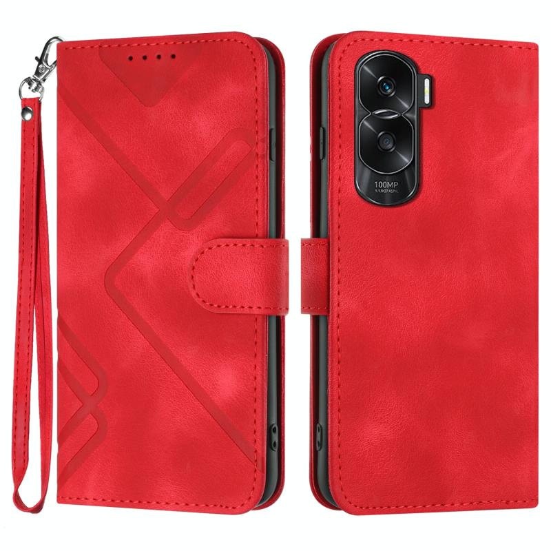 Θήκη τηλεφώνου Honor X50i με σχέδιο γραμμής, υφή δέρματος (Κόκκινο)