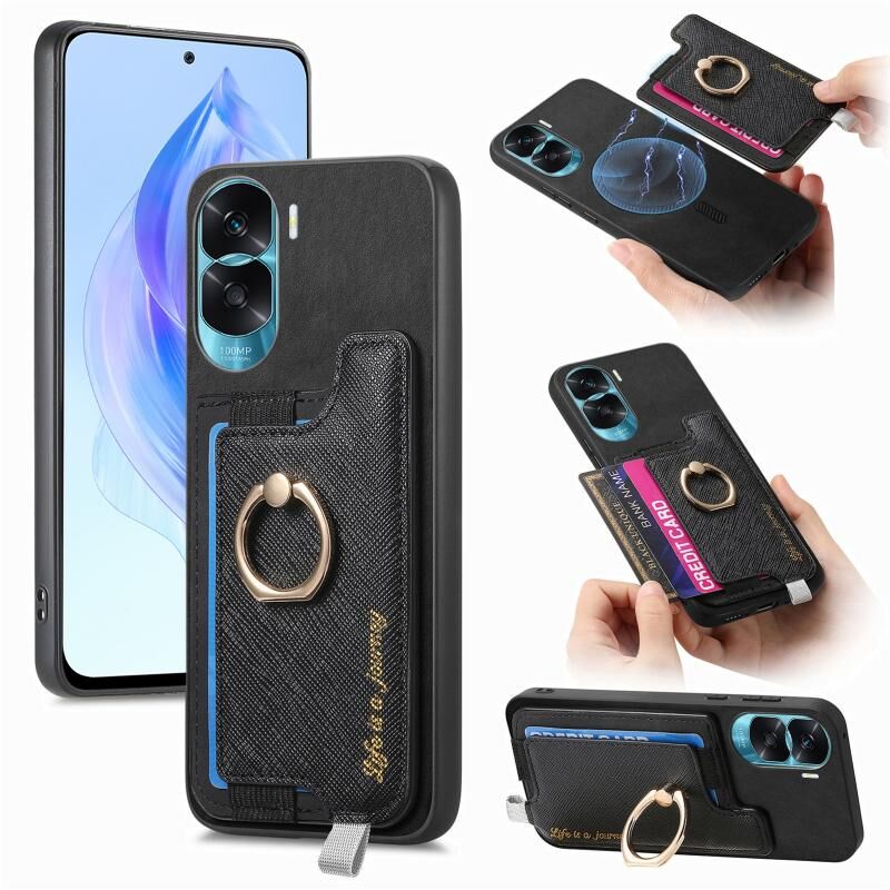 Θήκη τηλεφώνου For Honor X50i Retro Magsafe Cross Δερμάτινος Δακτύλιος Κάρτας (Μαύρο)