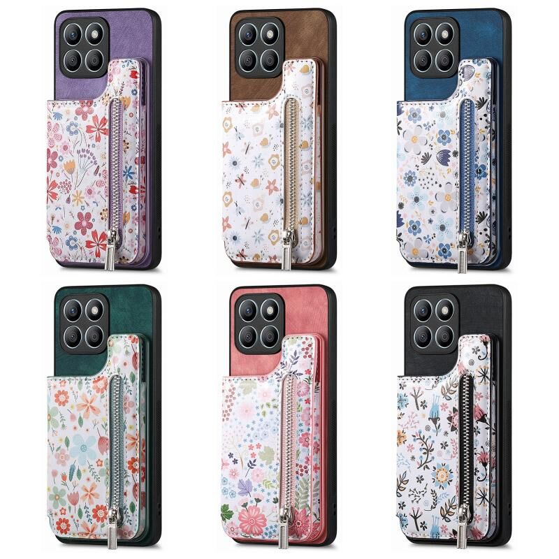 Θήκη τηλεφώνου Honor X50i+ με σχέδιο retro, φερμουάρ και θήκη πορτοφολιού (Μπλε)
