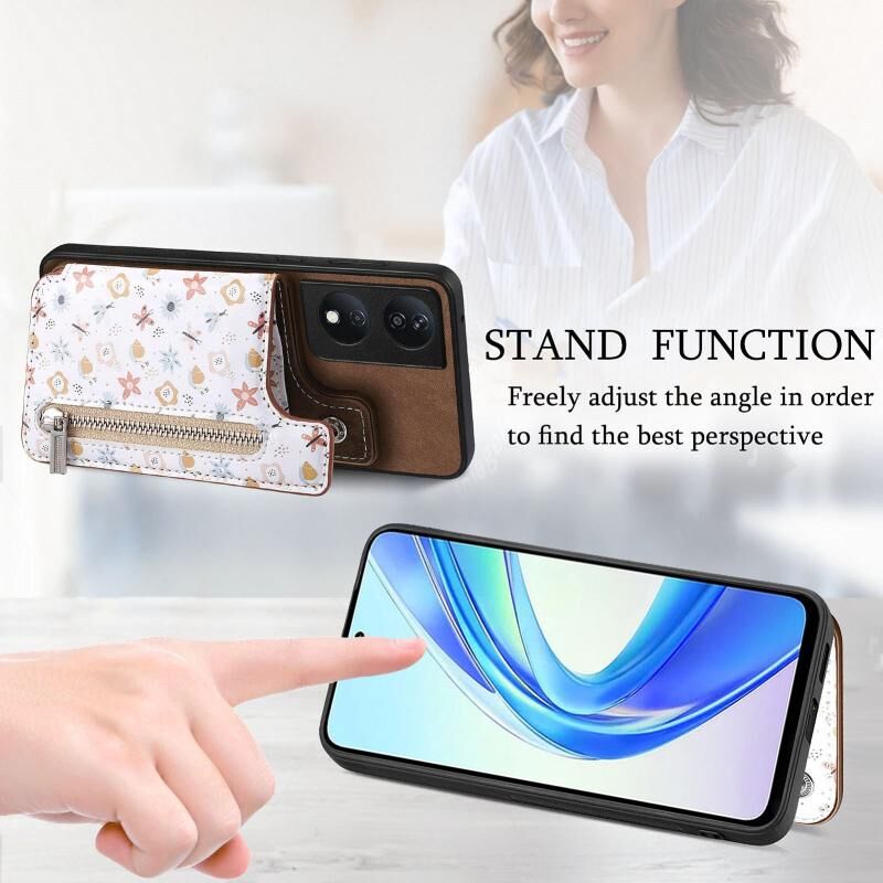 Θήκη τηλεφώνου Honor X50i+ με σχέδιο retro, φερμουάρ και θήκη πορτοφολιού (Ροζ)