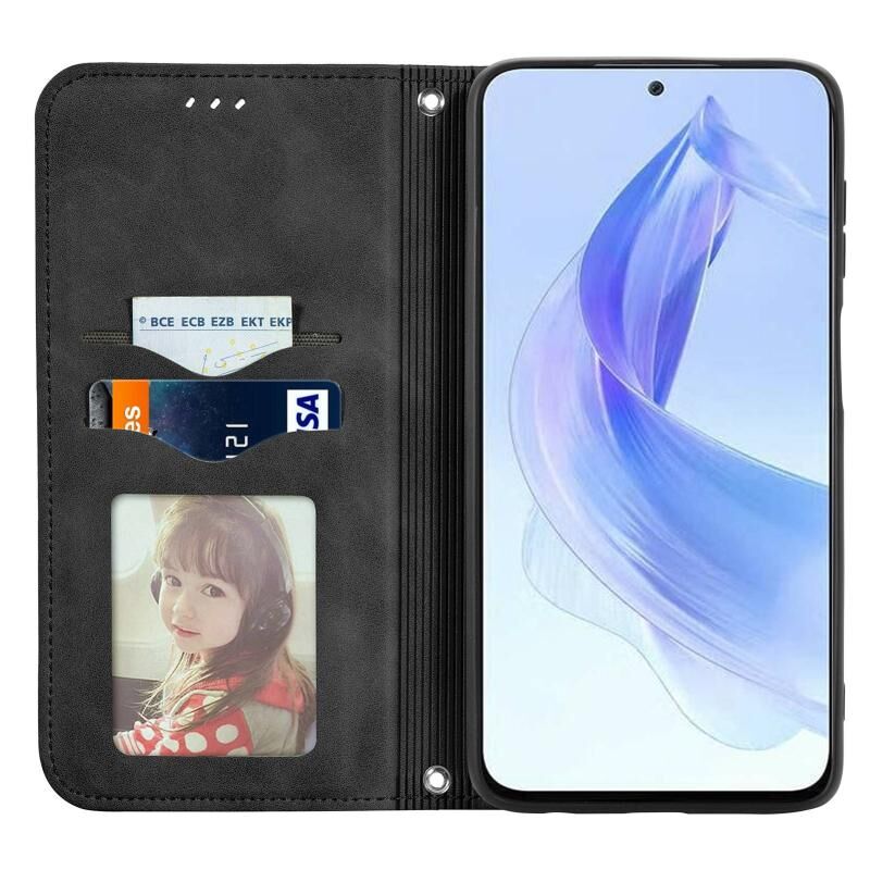 Για Honor X50i Ρετρό δέρμα αίσθηση μαγνητική Flip δέρμα τηλέφωνο υπόθεση (Μαύρο)