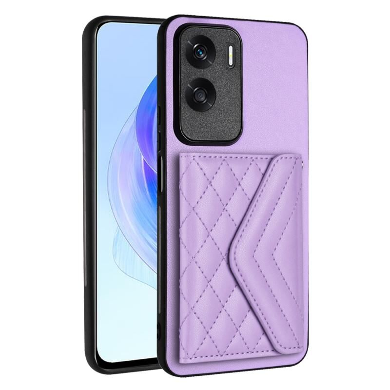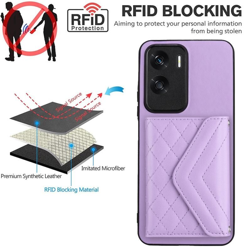 Για Honor X50i Rhombic υφή κάρτα τσάντα RFID υπόθεση τηλεφώνου με μακρύ κορδόνι (Light Purple)