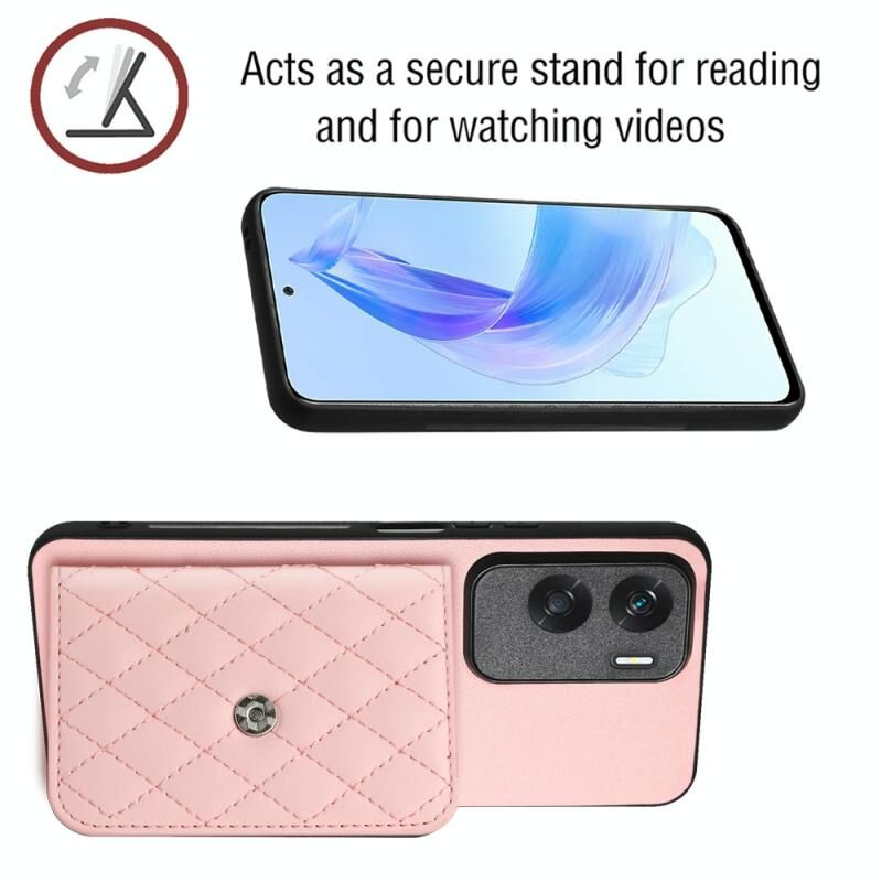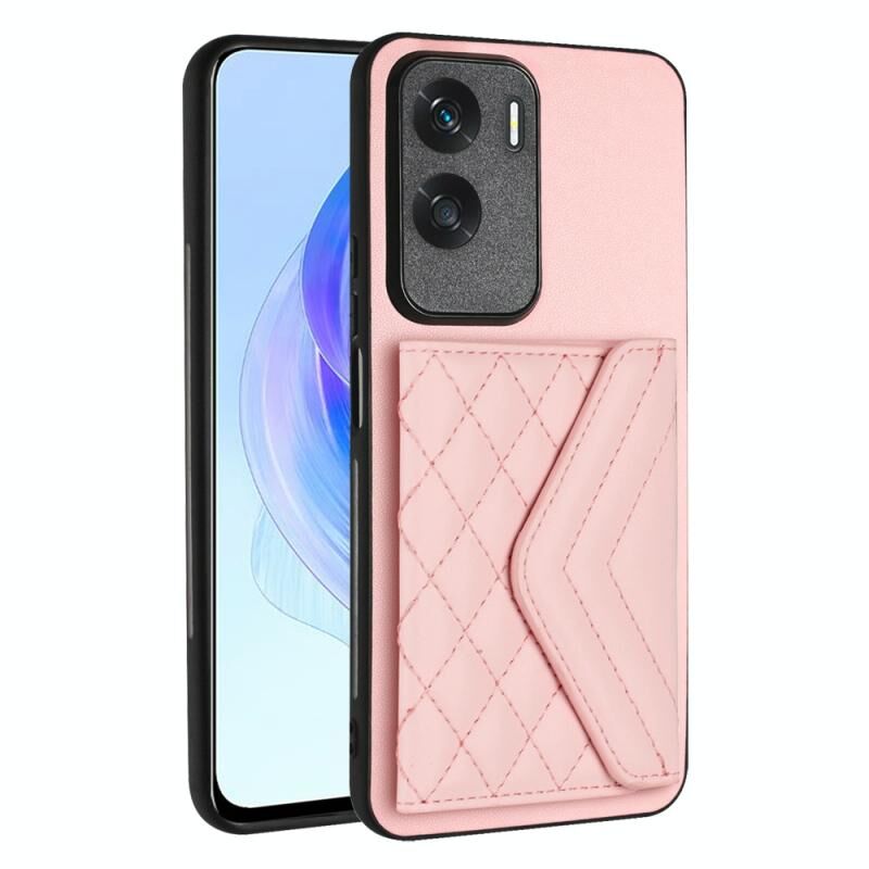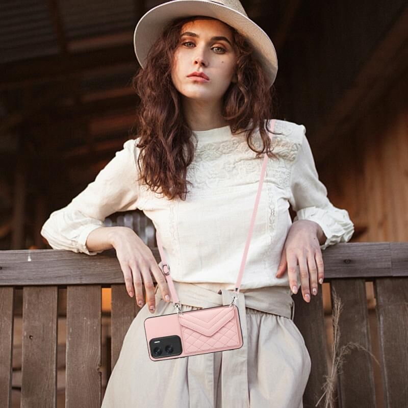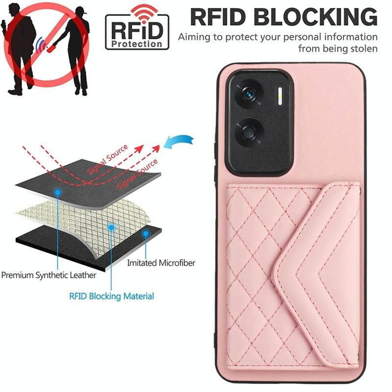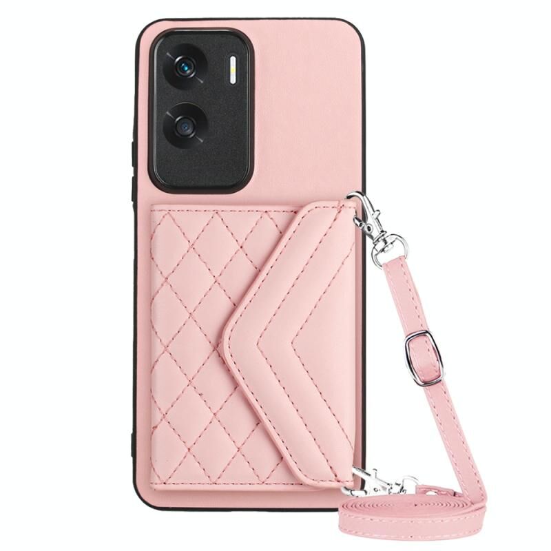 Για Honor X50i Rhombic υφή κάρτα τσάντα RFID υπόθεση τηλεφώνου με μακρύ κορδόνι (Rose Gold)