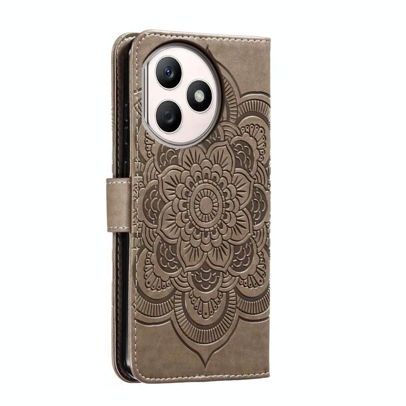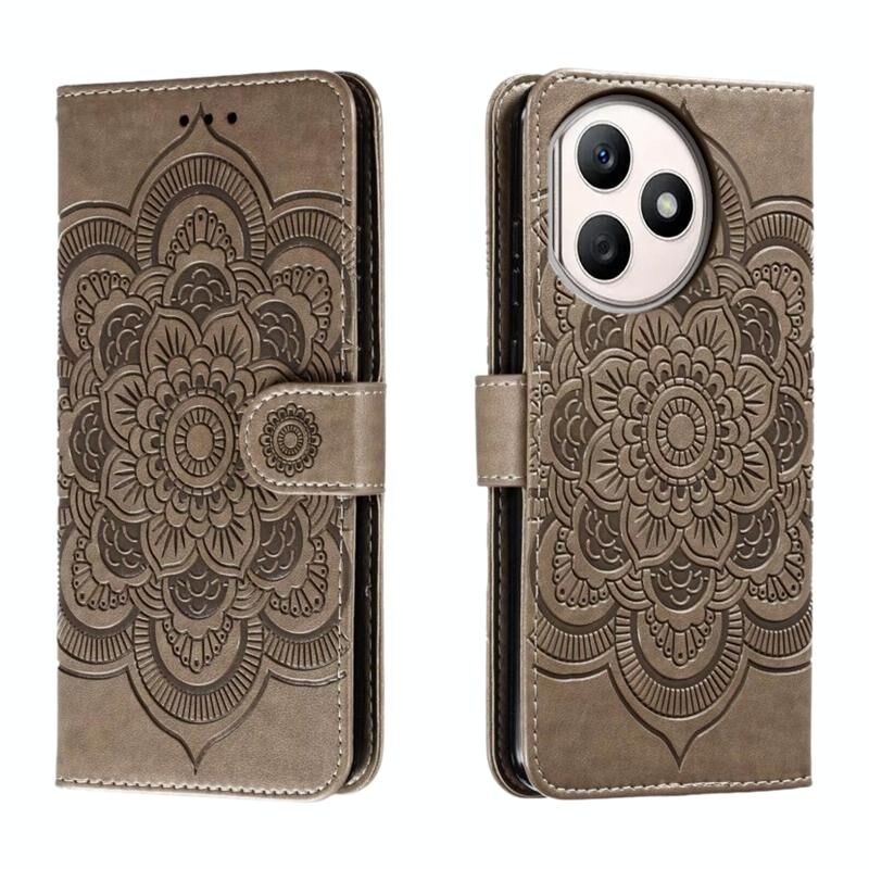 Για Honor X50i + Sun Mandala ανάγλυφο μοτίβο τηλέφωνο δερμάτινη θήκη (γκρι)