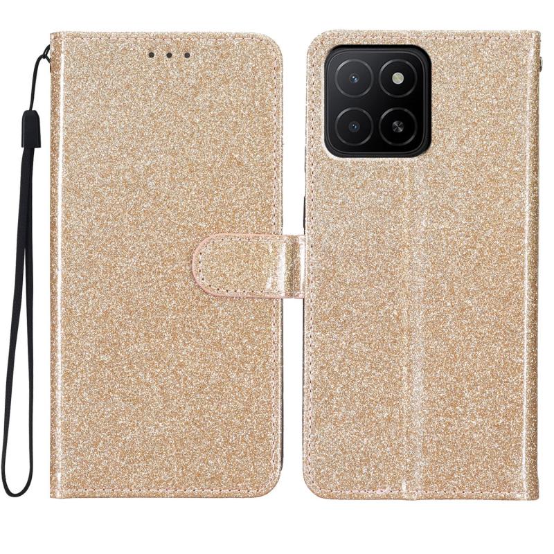 Θήκη τηλεφώνου από δέρμα με γκλίτερ σε σκόνη για Honor X5b 4G (Μαύρο)