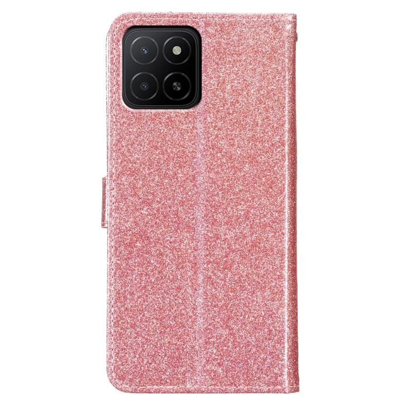 Θήκη τηλεφώνου από δέρμα με γκλίτερ σε σκόνη για Honor X5b 4G (Μαύρο)