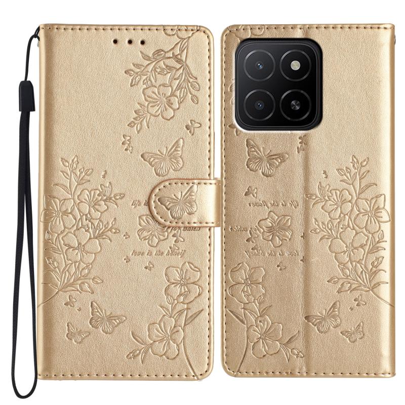 For Honor X5b Butterflies And Flowers Leather Phone Case(Gold)