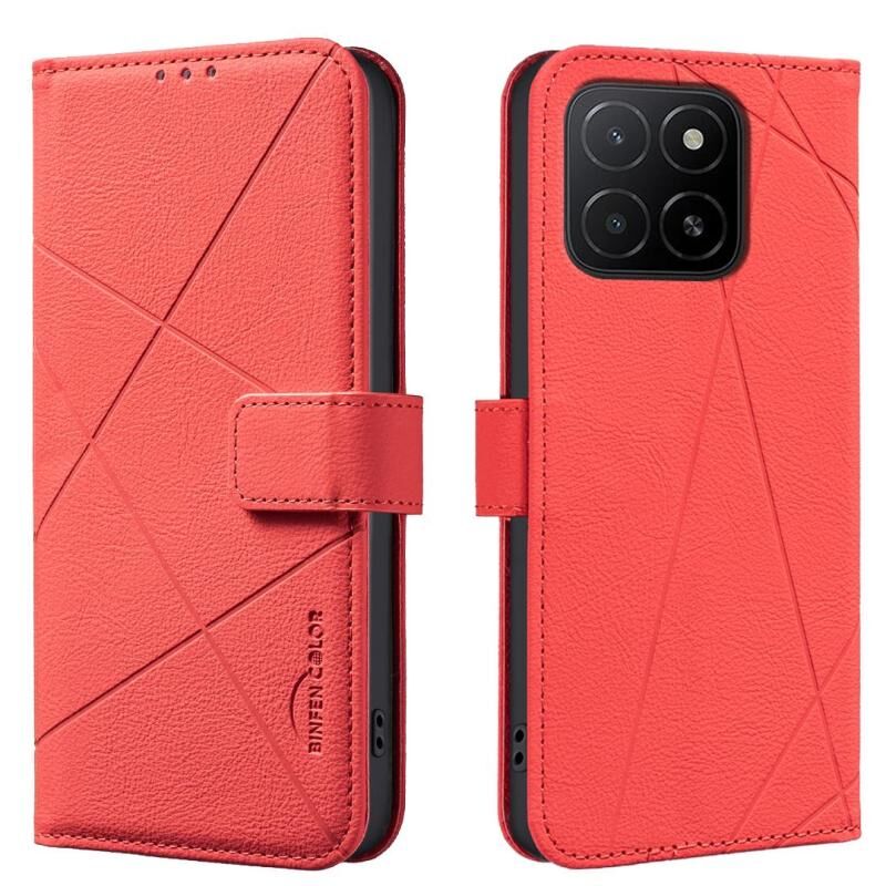 For Honor X5B Geometric Pattern RFID Leather Phone Case(Red)