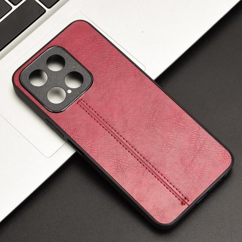 Για Honor X5b / Honor X5b Plus Αγελάδα μοτίβο ραπτικής κάρτα τσάντα υπόθεση τηλεφώνου (κόκκινο)