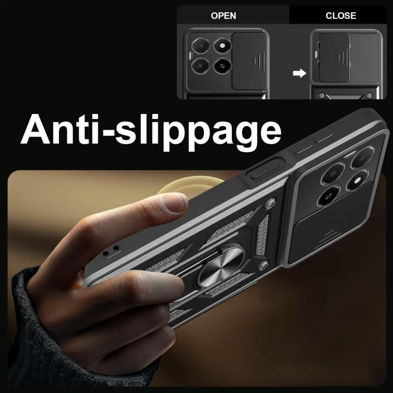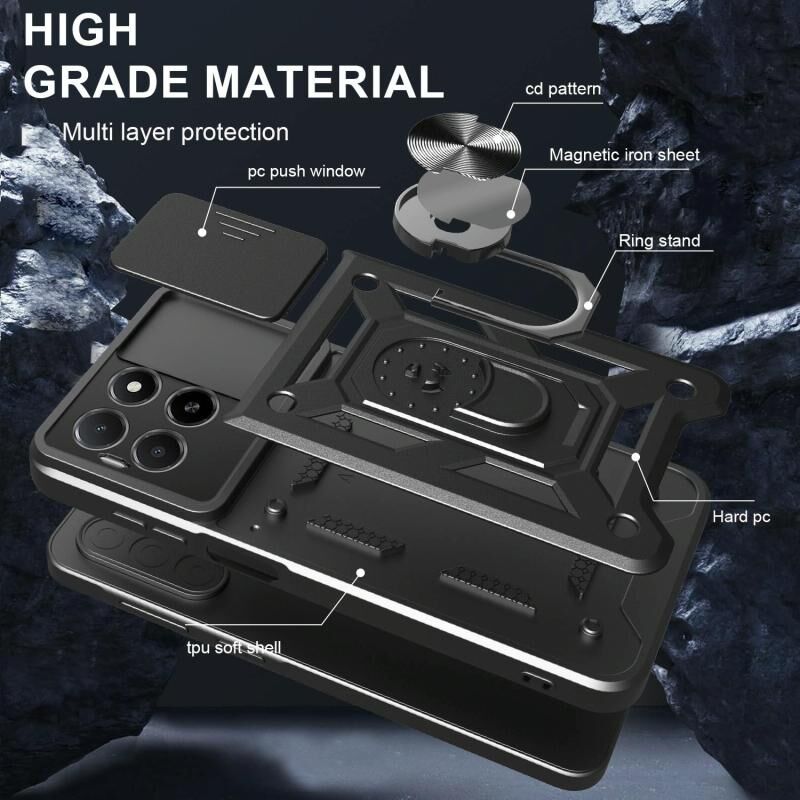 Θήκη κινητού τηλεφώνου For Honor X5b Plus με σχεδιασμό ολισθαίνουσας κάλυψης κάμερας, κατασκευασμένη από TPU+PC (Μαύρο)