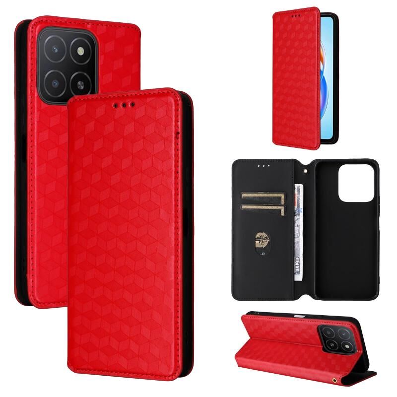 Θήκη τηλεφώνου από δέρμα με ανάγλυφη υφή κυβικού πλέγματος για Honor X5b / X5b Plus (Μαύρο)