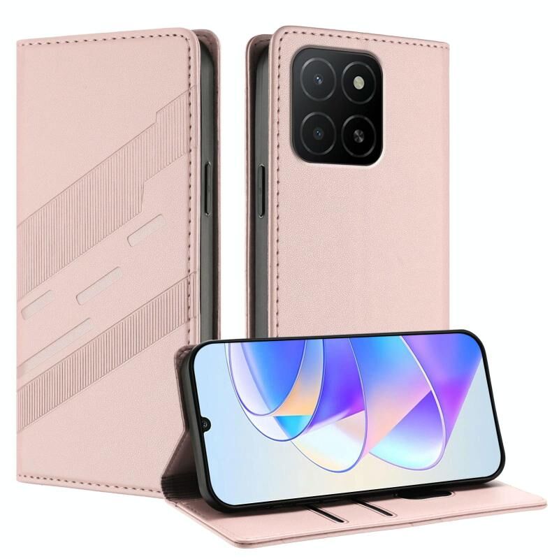 Θήκη τηλεφώνου από δέρμα retro, πολυλειτουργική με πορτοφόλι, ανάγλυφη για Honor X5b / X5b Plus (Μαύρο)