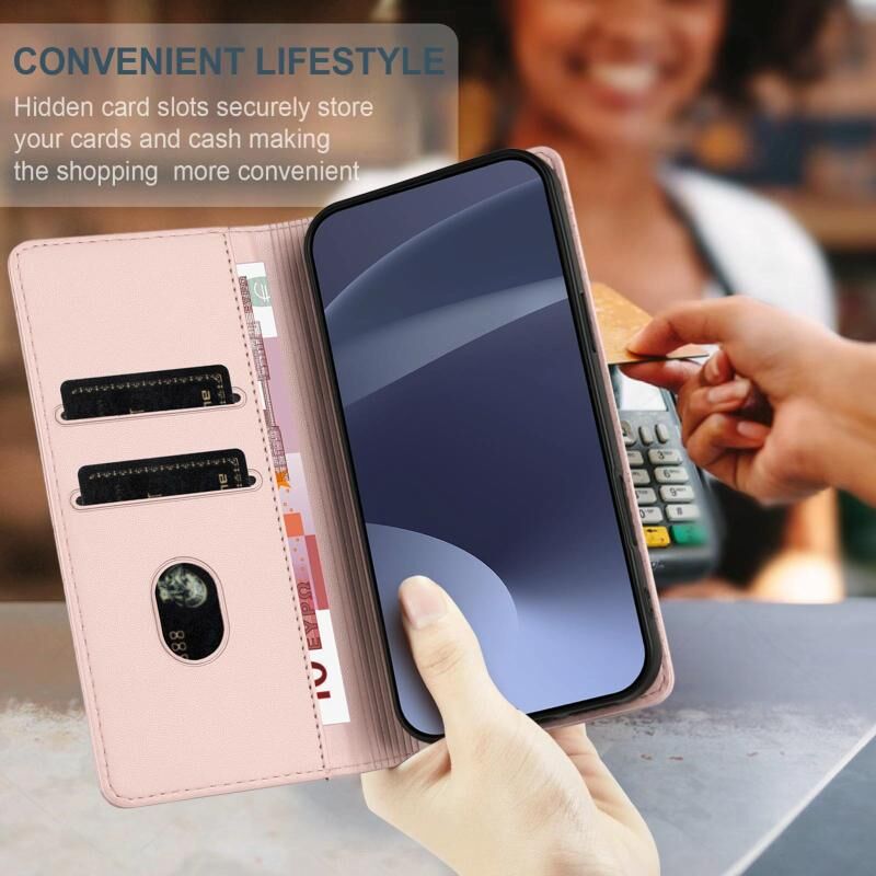 4. Λειτουργία πορτοφολιού: Η δερμάτινη θήκη είναι εξοπλισμένη με υποδοχές καρτών για την τοποθέτηση καρτών και ενός μικρού ποσού μετρητών.