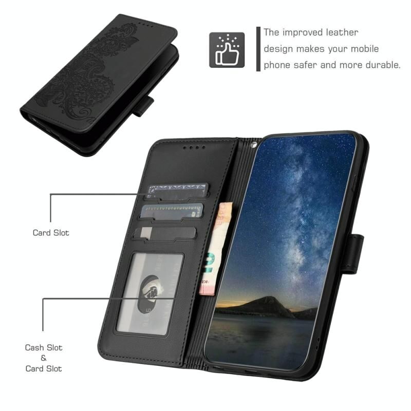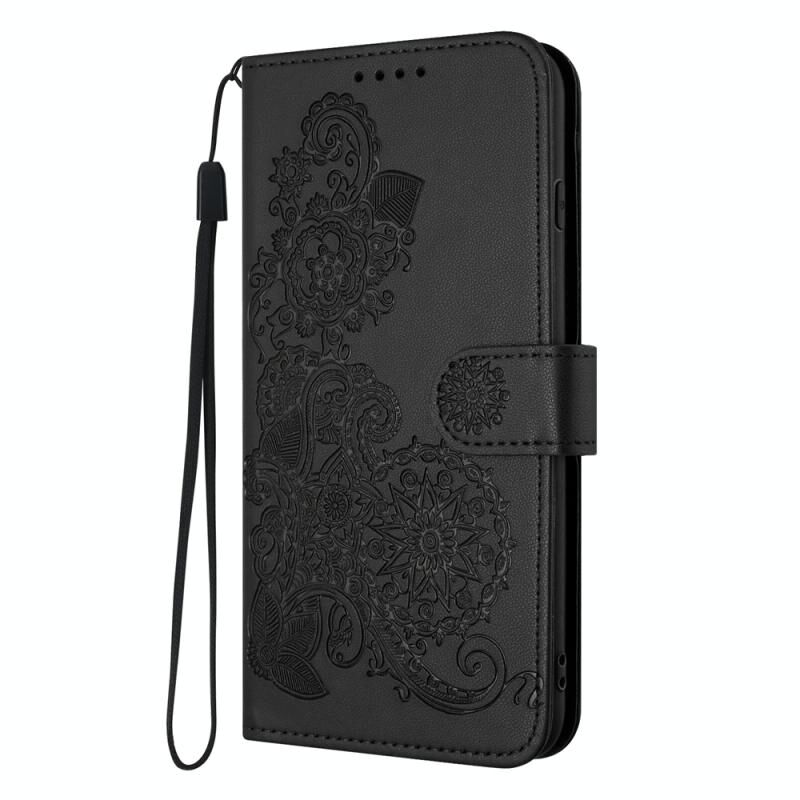 Για Honor X5b / X5b Plus Παγκόσμια Datura λουλούδι ανάγλυφο Flip δερμάτινη θήκη τηλεφώνου (μαύρο)
