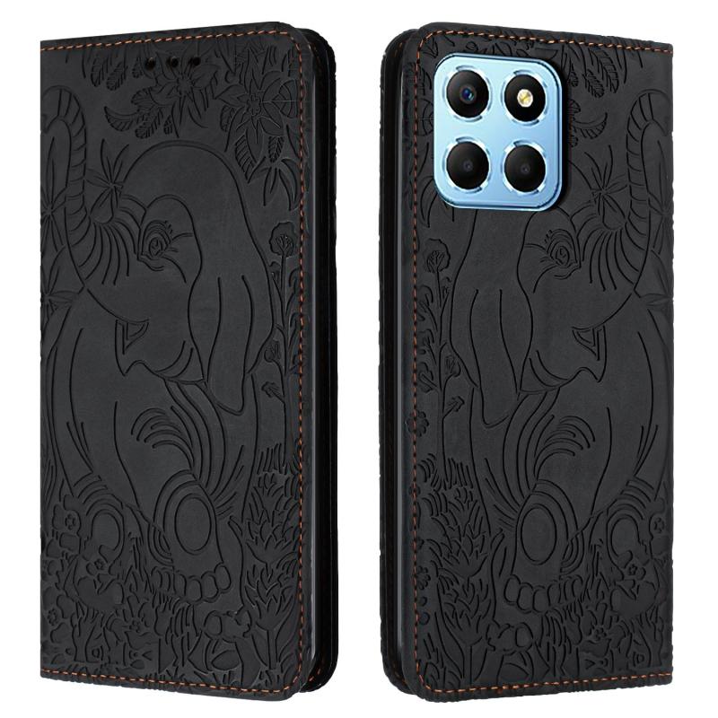 For Honor X6 4G Retro Elephant Embossed Leather Phone Case(Black)