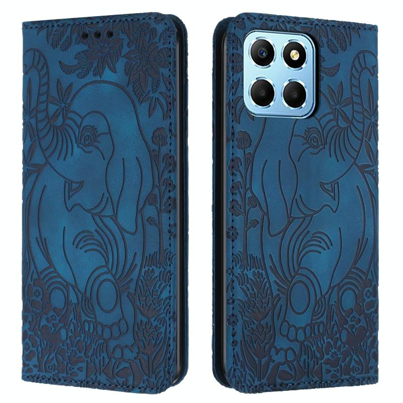 For Honor X6 4G Retro Elephant Embossed Leather Phone Case(Blue)