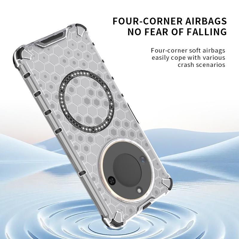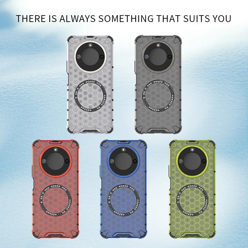 For Honor X60 5G Honeycomb Magnetic Ring Shockproof Phone Case(Blue)