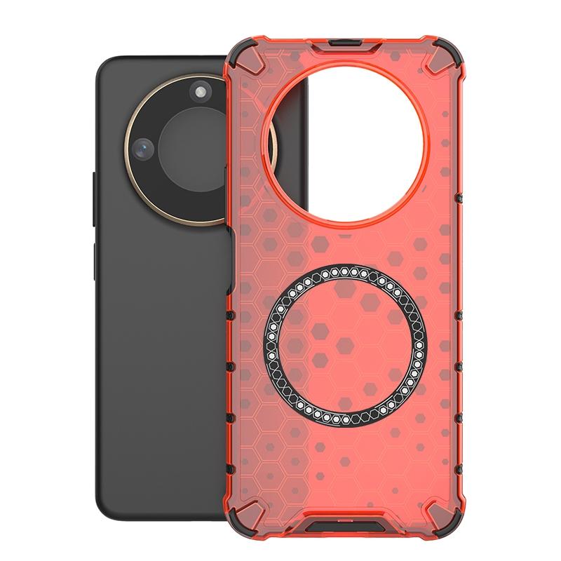 For Honor X60 5G Honeycomb Magnetic Ring Shockproof Phone Case(Red)