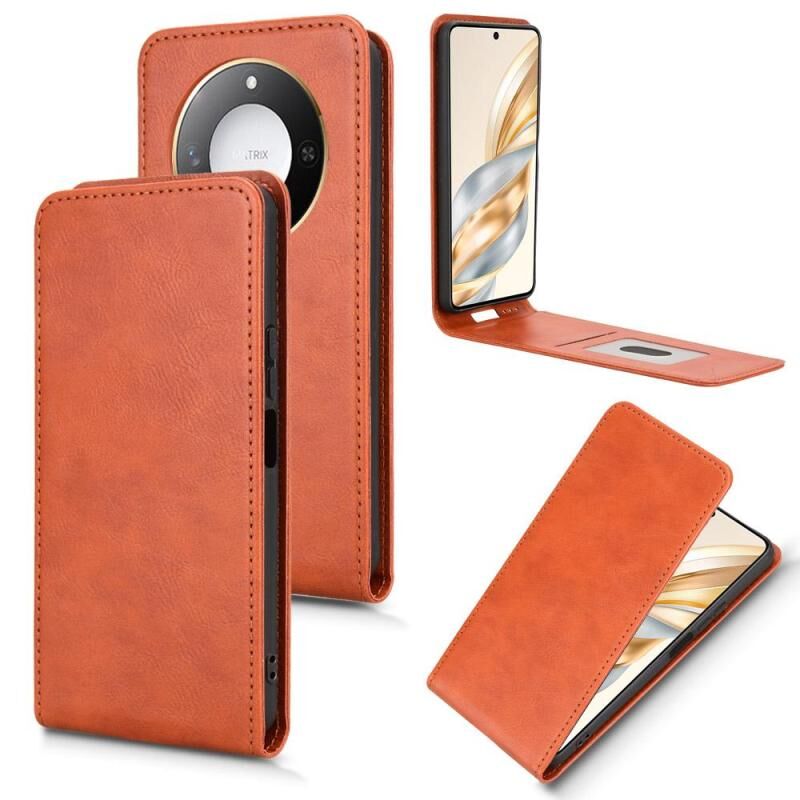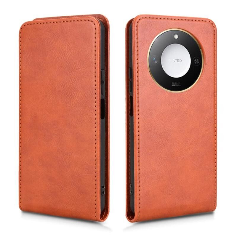 For Honor X60 5G / X9c Smart Magnetic Vertical Flip Leather Phone Case(Brown)