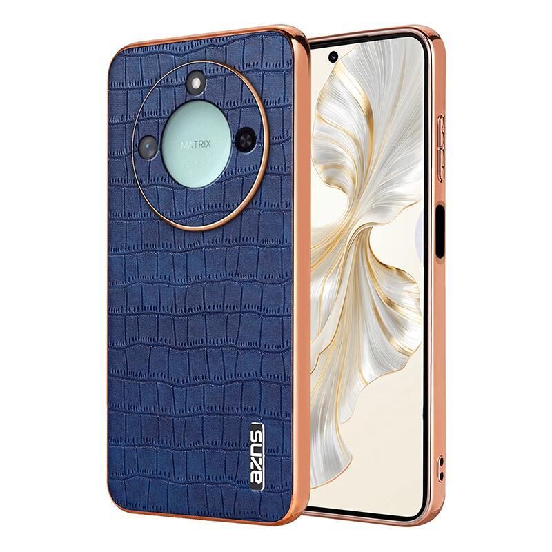 Θήκη κινητού τηλεφώνου πλήρους κάλυψης με ηλεκτρολυτικό πλαίσιο, υφή κροκόδειλου για Honor X60 AZNS (Μαύρο) (Μπλε)
