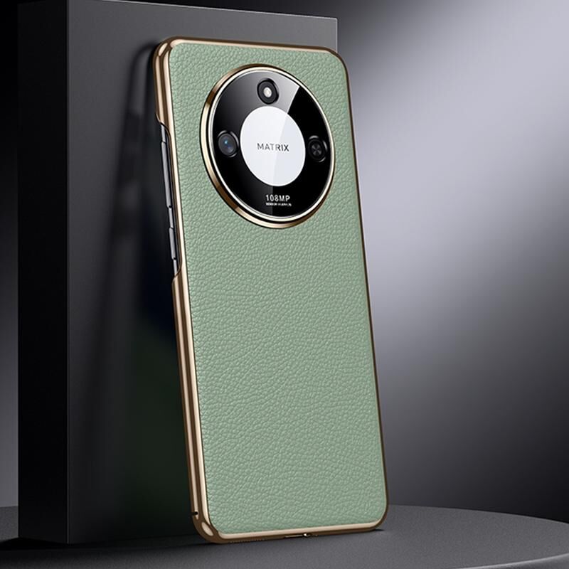 Θήκη κινητού τηλεφώνου Honor X60 από γνήσιο δέρμα και πολυανθρακικό πλαστικό (Πράσινο)