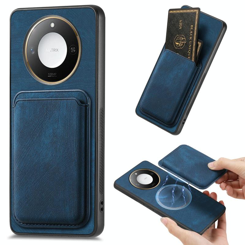 Θήκη τηλεφώνου με μαγνητικό κλείσιμο και κάρτες από δέρμα retro για Honor X60 Pro 5G (Μαύρο)