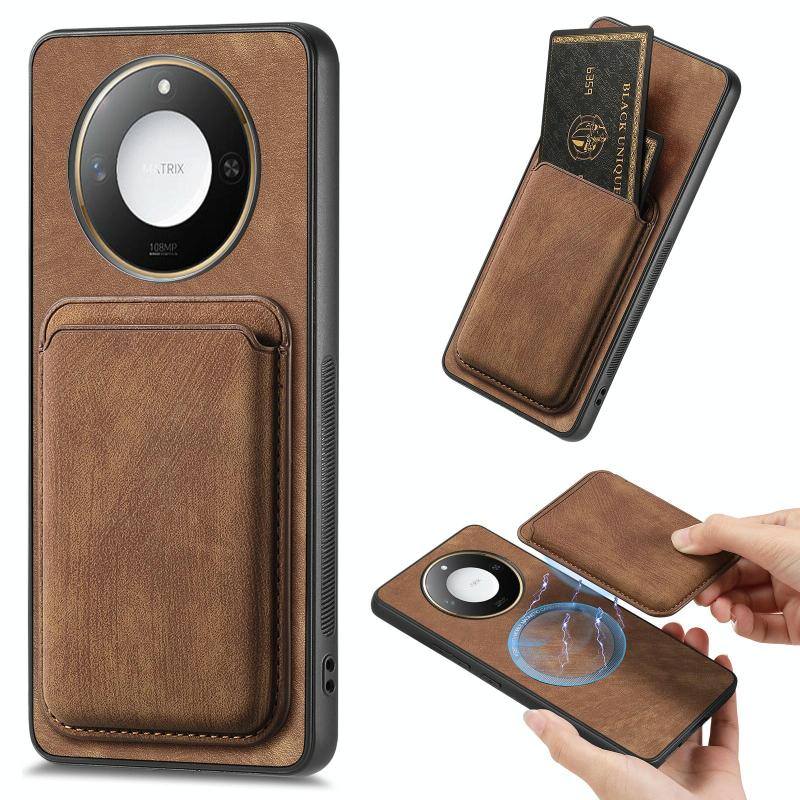 Θήκη τηλεφώνου με μαγνητικό κλείσιμο και κάρτες από δέρμα retro για Honor X60 Pro 5G (Μαύρο)