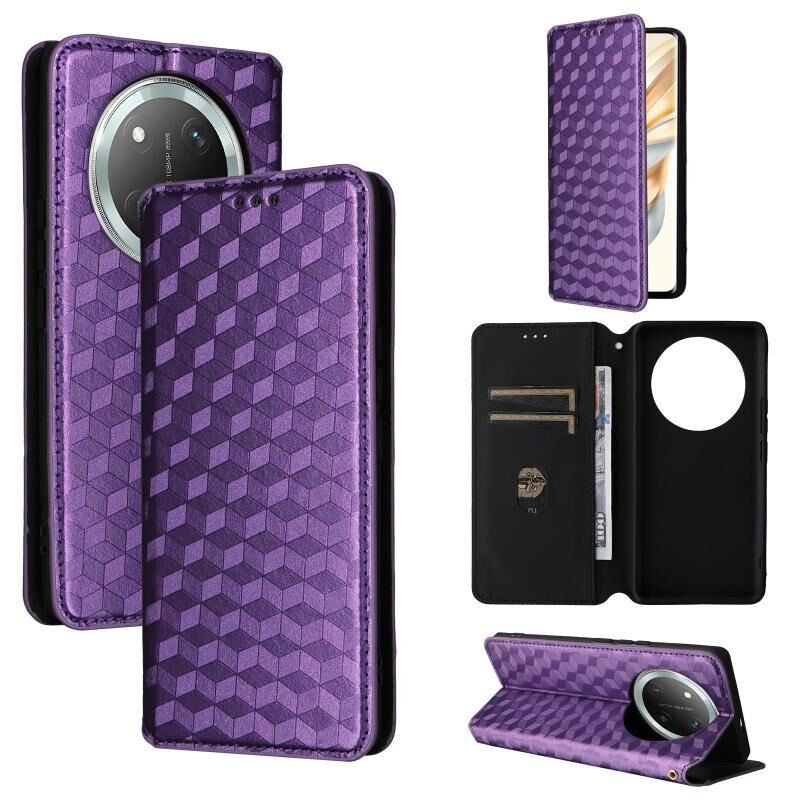 Θήκη τηλεφώνου από δέρμα με υφή κυβικού πλέγματος για Honor X60 Pro 5G / X9c 5G (Μαύρο)