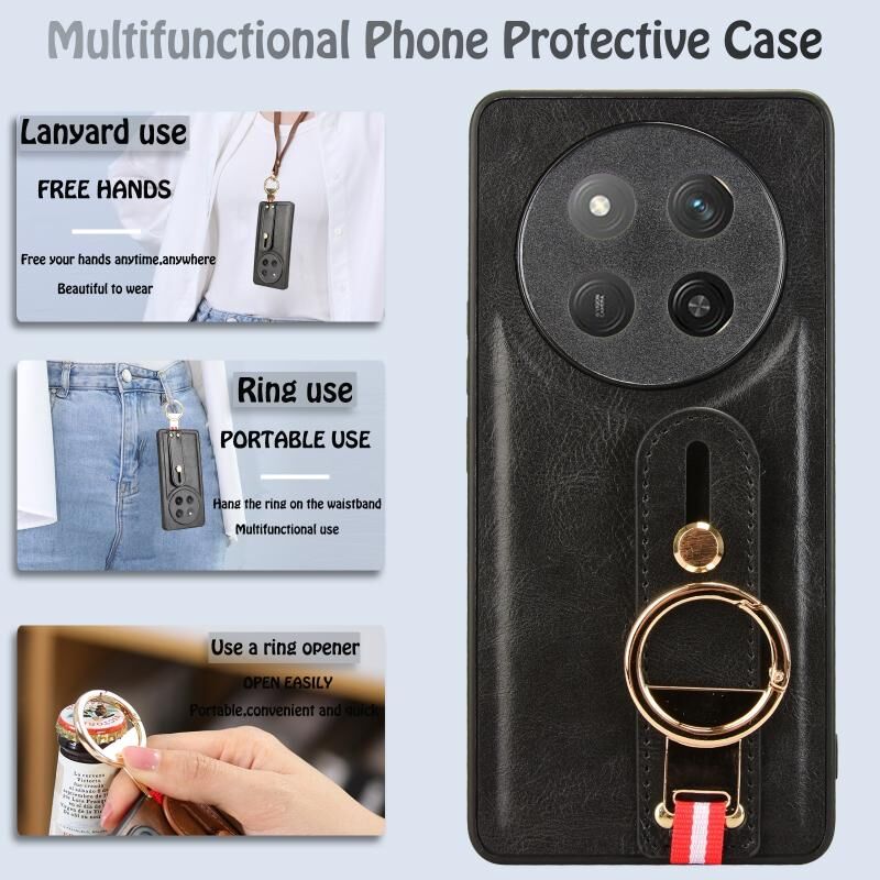 Για Honor X60 Pro 5G / X9C 5G Wristband δέρμα πίσω τηλέφωνο υπόθεση (Μαύρο)