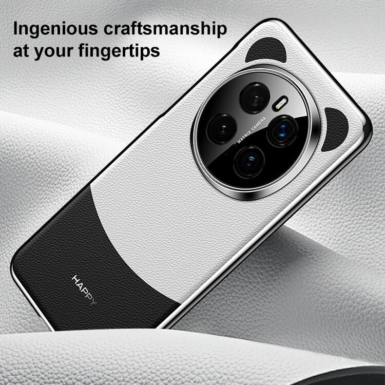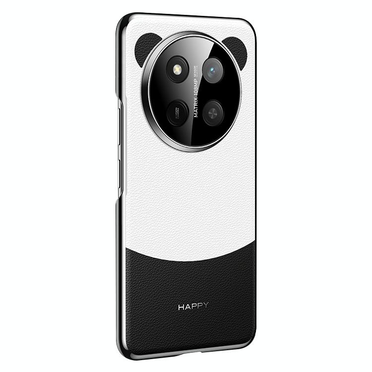 For Honor X60 Pro Panda 2 Plain Leather PC Phone Case(Black White)